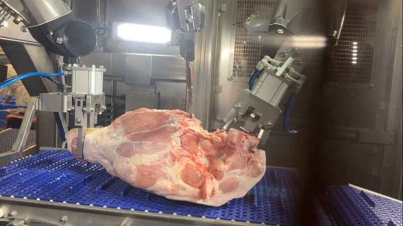 The technology developed by MAYEKAWA uses X-ray and 3D imaging to analyze the meat before it reaches the robot. Slaughterhouse workers often perform repetitive and strenuous tasks such as cutting and lifting, which can lead to strain injuries like tendonitis, muscle pain, and long-term wear. This type of technology could help alleviate much of that burden.