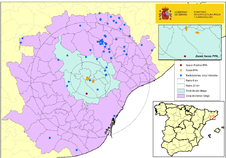 Ifølge den siste rapporten fra spanske myndigheter, er det ikke spredt smitte til noen av de 57 svinebesetningene som ligger innenfor restriksjonssonen.